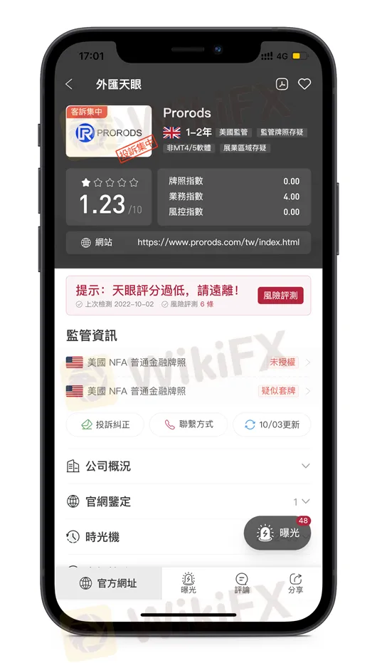 其實無論如何進入外匯交易領域,在交易之前可以到外匯天眼先驗證一下平台的安全性,我們來看一下Prorods的信息。