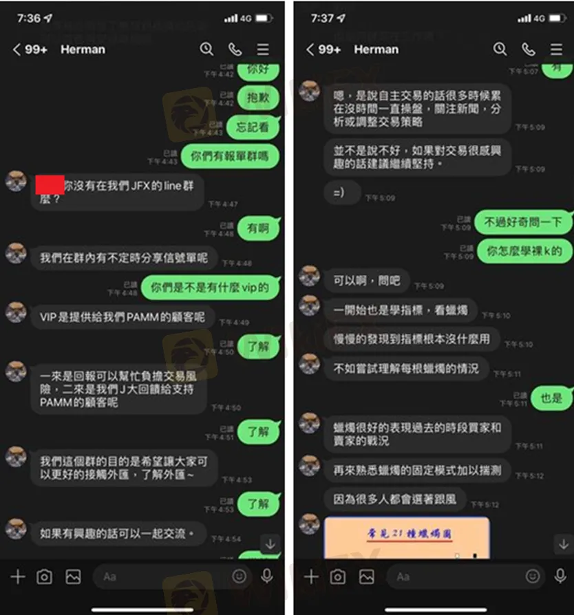 一開始,受害者是被臉書的社團成員邀請加入投資群組,在裡面接收各式各樣的外匯資訊,學習交易的技術分析和市場策略,而其他成員也都會分享經驗,看起來相當正常。