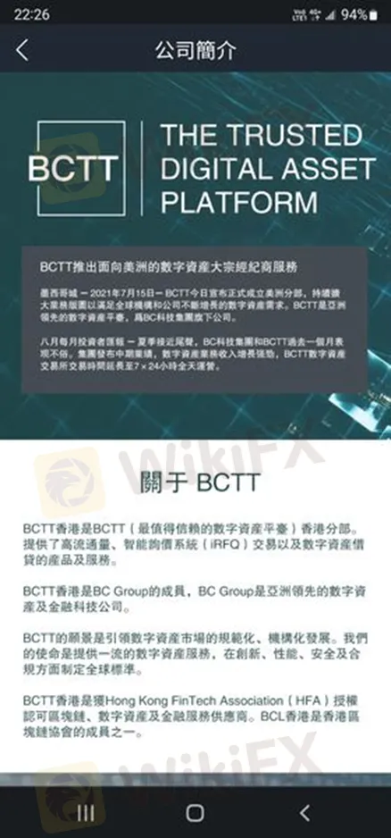 某天,受害者透過語音社交軟體認識一位網友,雙方互動感覺良好,接下來一段時間也都有保持聯繫。某天,對方在閒聊時突然開啟理財話題,並且推薦了BCTTM這個平台,還宣稱可以帶領她輕鬆獲利。受害者看到該公司簡介寫得有模有樣,沒想太多就註冊了帳戶。