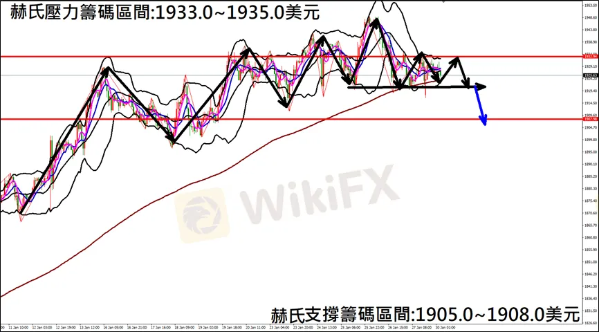 偏空思路為主,可在布林通道中軌下方1928.0-1930.0佈局空單進場