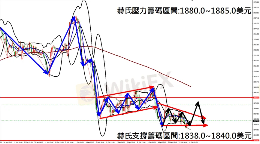 偏空思路為主,可在布林通道中軌上方1864.0-1867.0佈局空單進場