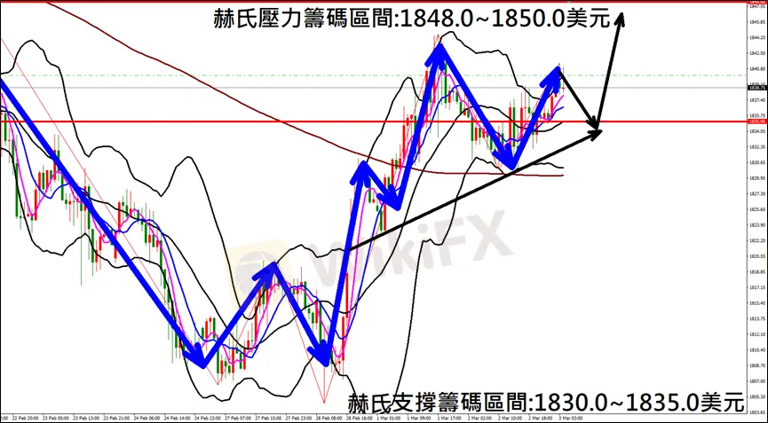 偏多思路為主,可在布林通道中軌上方1837.0-1839.0佈局多單進場