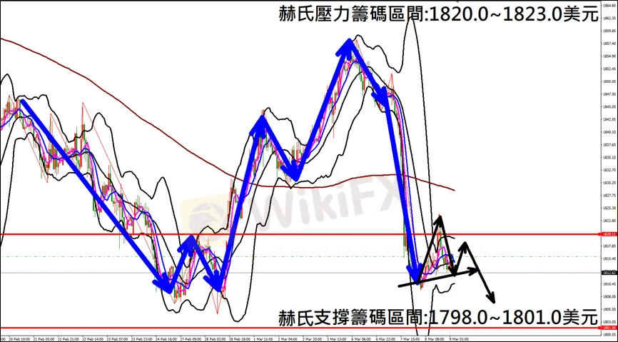 偏空思路為主,可在布林通道中軌下方1811.0-1813.0佈局空單進場