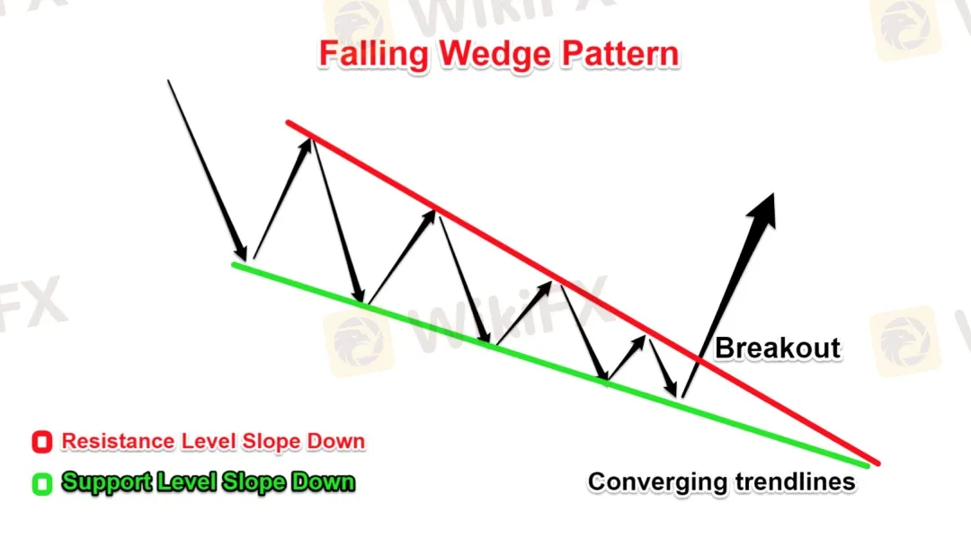 下跌楔形模式背後的心理是,隨著價格區間縮小,買家變得更加積極,而賣家沒有足夠的動力繼續。