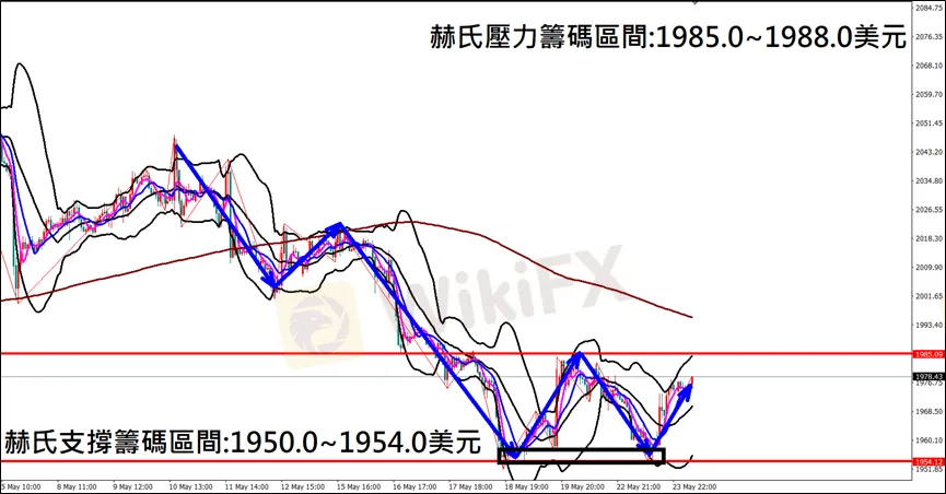 今日(5月24日)黃金早盤在1974.2美元/盎司附近,從技術分析面切入,1小時級別觀察黃金走勢,昨日(23日)K棒盤中狹幅震盪後出現強勢反彈,目前K棒拉出長紅棒顯示多方動能十足,因此建議外匯市場投資人,今日黃金操作心態以偏多看法為主。