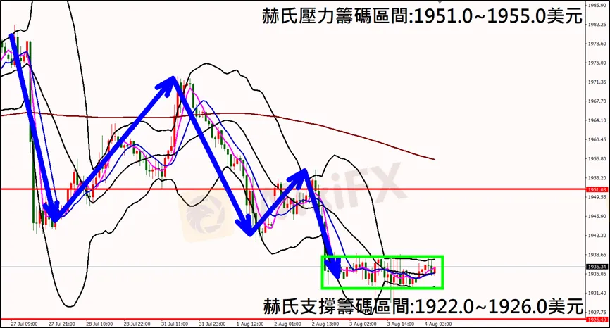今日(8月4日)黃金早盤在1934.1美元/盎司附近,從技術分析面切入,1小時級別觀察黃金走勢,昨日(3日)K棒短線跌深後落在低點狹幅震盪,目前K棒在布林通道中軌震盪,同時開口轉為縮口水平狀態,若非農數據大幅上升則有望出現一波重挫走勢,因此建議外匯市場投資人,今日黃金操作心態持續以偏空看法為主。
