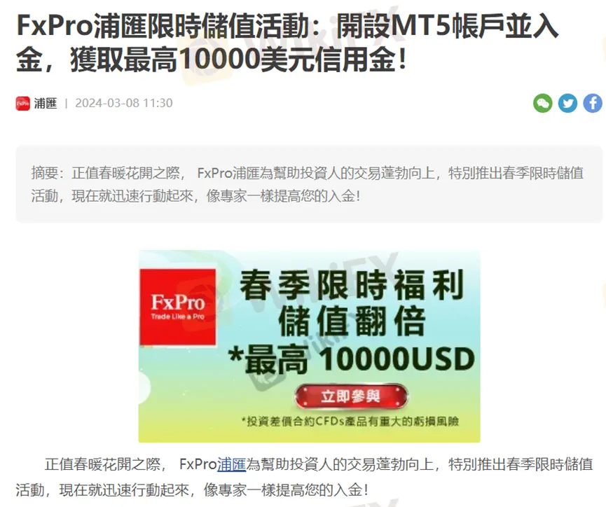 不久前,外匯天眼分享FxPro浦匯近期針對用戶推出的限時儲值活動,只要開戶與入金就能獲得最高1萬美元的信用金獎勵,之後我們也收到許多投資人來信,想更多了解該平台的詳細資訊與評價。因此,今天外匯天眼就帶大家一起研究、解析這家經紀商。