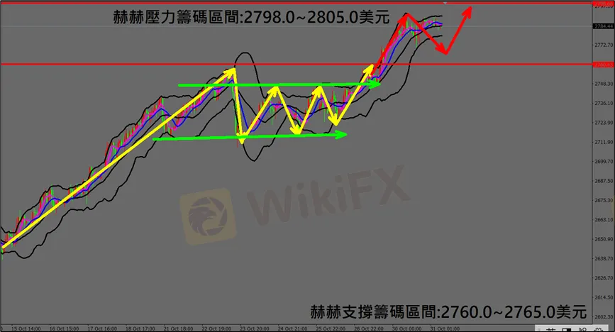 今日(10月31日)黃金早盤在2787.3美元/盎司附近,從技術分析面切入,1小時級別觀察黃金走勢昨日(30日)K棒短線利空小幅拉回修正後,目前K棒高點震盪,有望短線拉回後再次上漲,因此建議外匯市場投資人,今日黃金操作心態嘗試以偏多看法為主。
