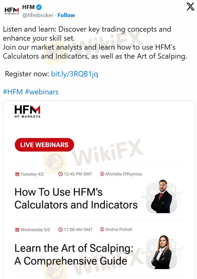 交易者可透過 HFM 官網註冊參加這些研討會,直接獲取高級市場策略,提升交易表現。