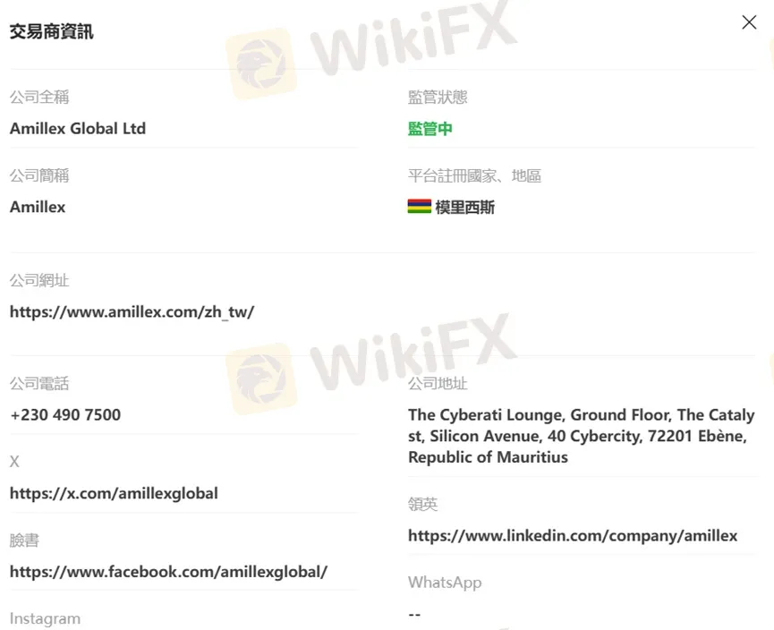 Amillex(安邁國際)是一個多資產平台,允許客戶投資股票指數、數字資產和交易差價合約。受模里西斯金融服務委員會監管。提供原始、經典和標準等帳戶類型。該平台提供多樣化的可交易資產,包括外匯、貴金屬、能源等。