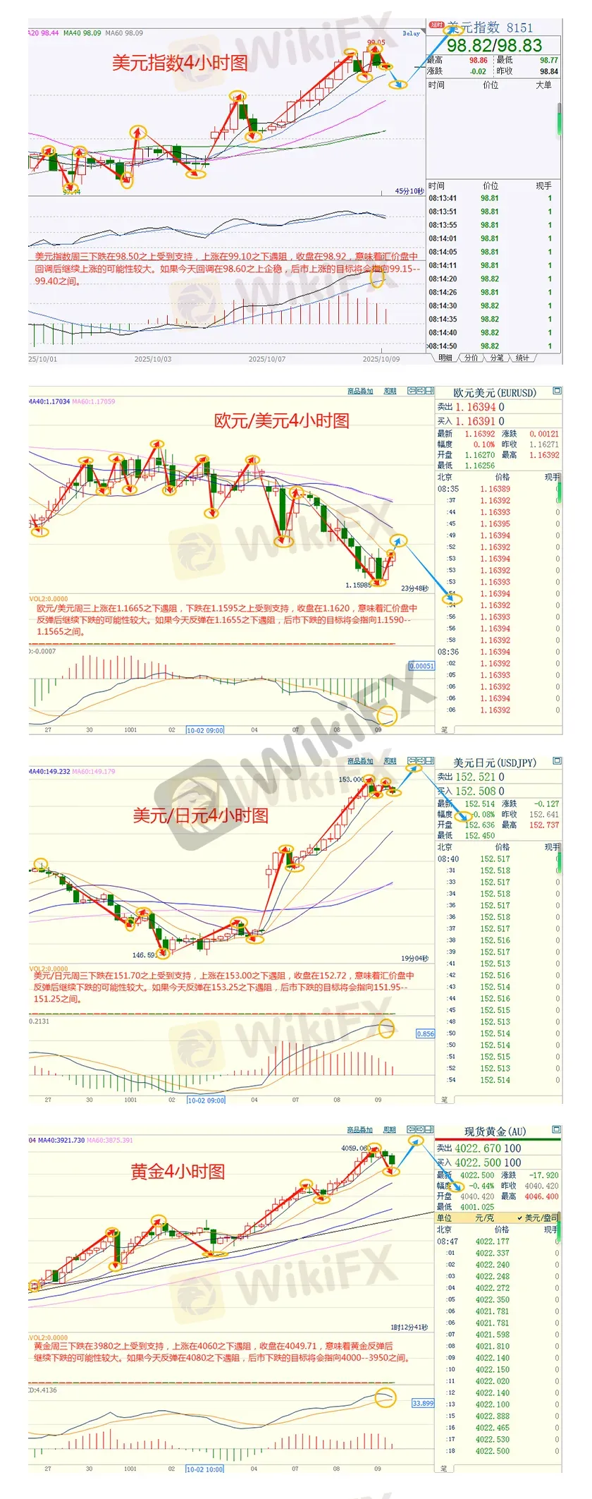 摘要:CWG Markets市場資訊 2025年10月9日(週四):匯訊摘要:周三,美元指數連續第三個交易日上漲,尾盤觸及99關口後有所回落,最終收漲0.26%,報98.84,創逾兩個月新高。基準的10年期美債收益率收報4.121%,對聯儲政策利率敏感的2年期美債收益率收報3.591%。黃金價格周三(10月8日)不僅首度突破每盎司4000美元大關,現貨黃金一度刷新歷史高點至4059.07美元/盎司,更帶