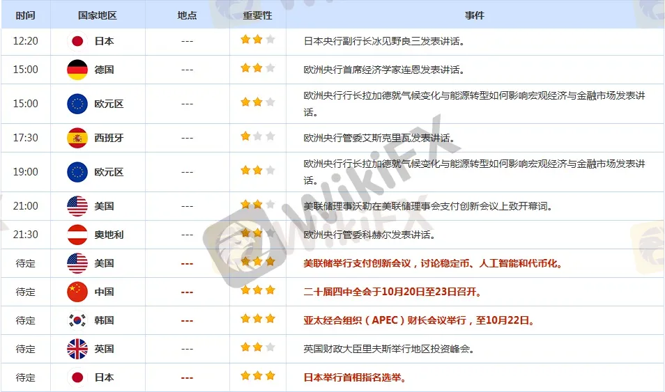 摘要:CWG Markets市場資訊2025年10月21日(週二):匯訊摘要:週一,美元指數維持震盪格局,最終小幅收漲0.06%,報98.60。 基準的10年期美債收益率收報3.9850%,對美聯儲政策利率敏感的2年期美債收益率收報3.4640%。週一,現貨黃金價格強勢上漲逾2.5%,不僅收復了上週五的全部跌勢,還一度重繪歷史高點至每盎司4381.29美元,最終收報4356.26美元,漲幅約2.5%。