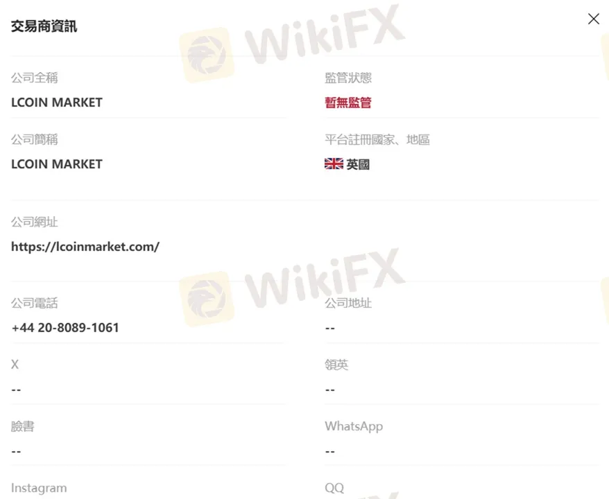 透過外匯天眼官網查詢LCOIN MARKET,可以看到這是成立5-10年的交易商,目前不但查不到有效的監管牌照資訊,也不清楚其展業區域,系統判定監管指數、牌照指數、風控指數都是0,天眼評分只有1.52。
