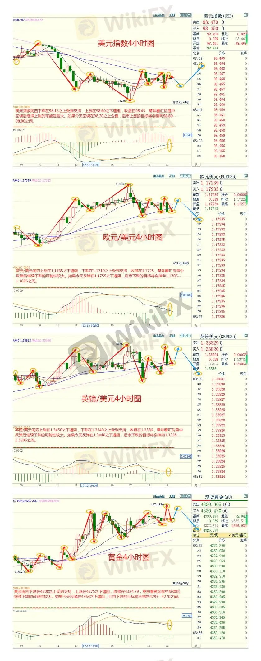 摘要:CWGMarkets市場資訊2025年12月19日(週五):匯訊摘要:週四,因美國11月CPI通脹低於預期,美元指數在美盤前急速跳水,並一度跌至98大關附近,隨後又收復全部失地,最終收漲0.06%,報98.44;基準的10年期美債收益率最終收報4.125%,對美聯儲政策利率敏感的2年期美債收益率收報3.473%。週四(12月18日),金價一度飆升至4374美元/盎司的近兩個月高點,卻在短時間內回吐
