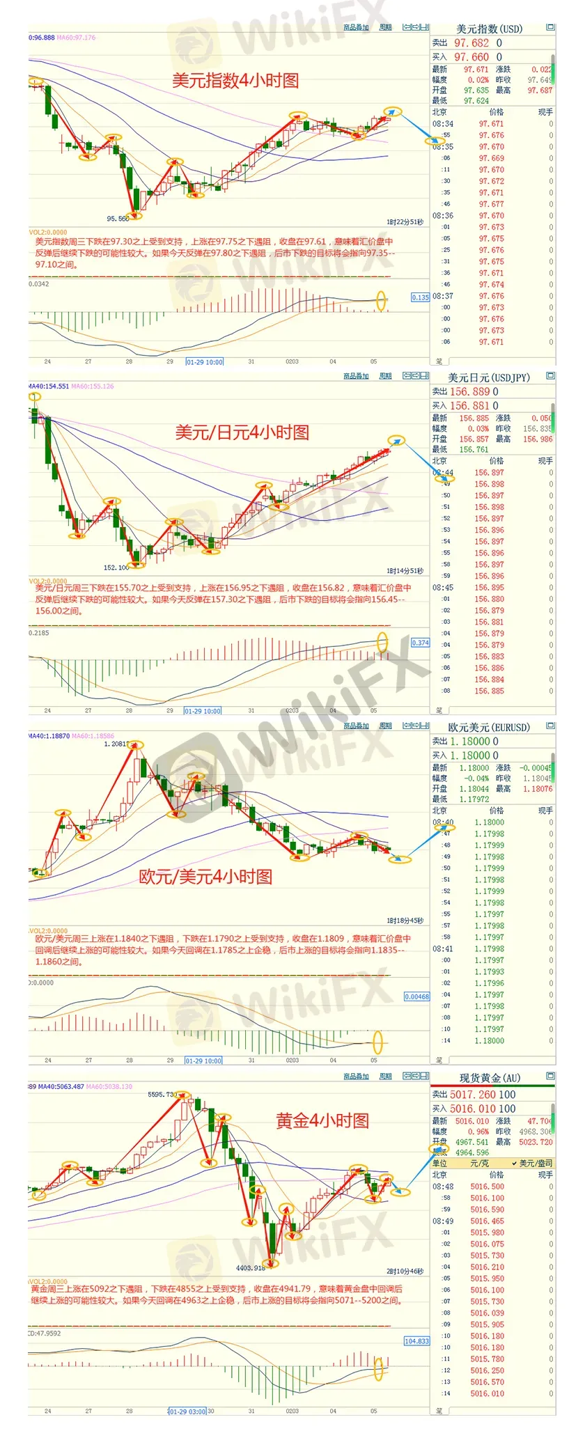 摘要:CWG Markets市場資訊2026年2月5日(週四):匯訊摘要:週三,美元指數震盪上行,但仍處於近期區間內部,最終收漲0.25%,報97.63;基準的10年期美債收益率收報4.280%,對美聯儲政策利率敏感的2年期美債收益率收報3.553%。週三黃金價格的走勢堪稱典型的分化行情。現貨金一度衝高至5091.63美元/盎司,漲幅超過3%,卻在隨後幾個小時內快速回吐大部分漲幅,最低觸及4853美元附